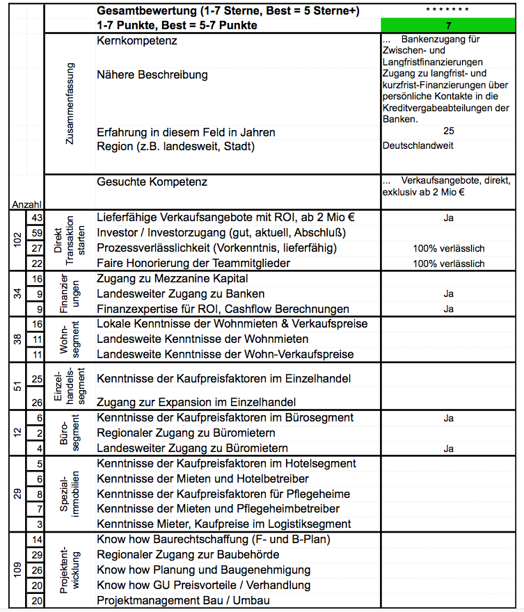 Sie haben zu diesem Zeitpunkt Zugriff auf Experten im Netzwerk, sei es lokal aktive kompetente Partner mit Fokus auf ein spezifisches Segment oder Partner die landesweit Einschätzungen abgeben können. Siehe Darstellung der Kompetenz an folgendem Beispiel: