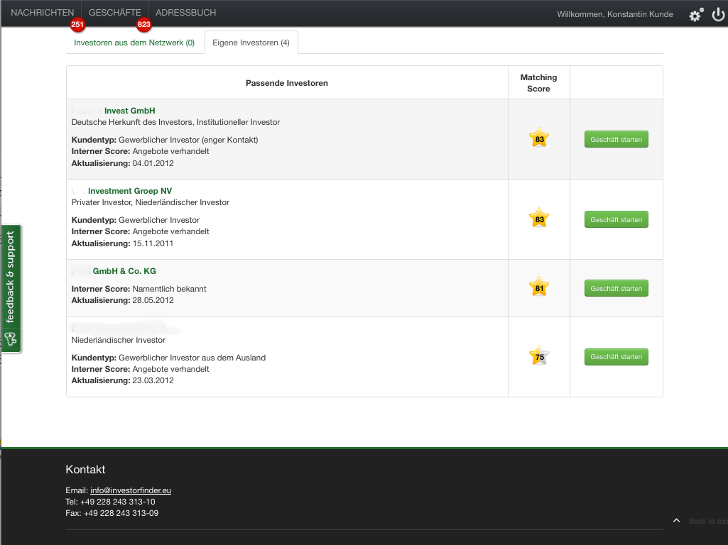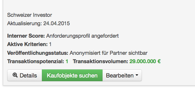 Dann lesen Sie in anonymisierter Form, ob das Objekt oder der Investor passen (matching). Sie entscheiden dann,
